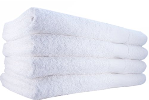 VALUABLE LUXURY - 4-pack bath towels, size 24" x 48" inches. Specially processed to resist shrinking and retain whiteness.