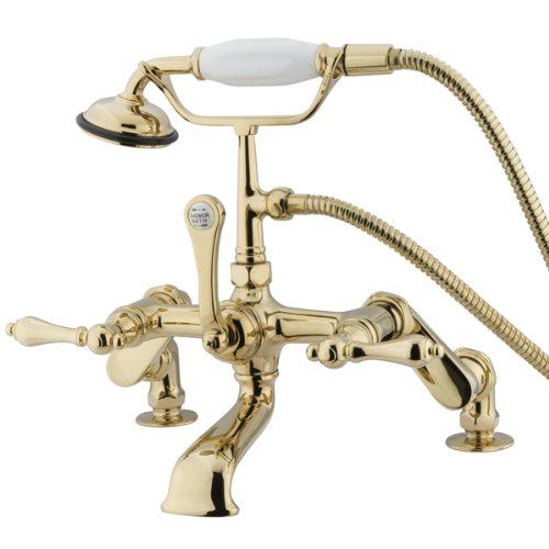 Kingston Brass CC651T2 Vintage 4-Inch to 13-Inch Adjustable Center Deck Mount Leg Tub Filler with Hand Shower, Polished Brass