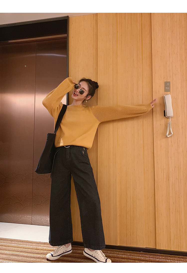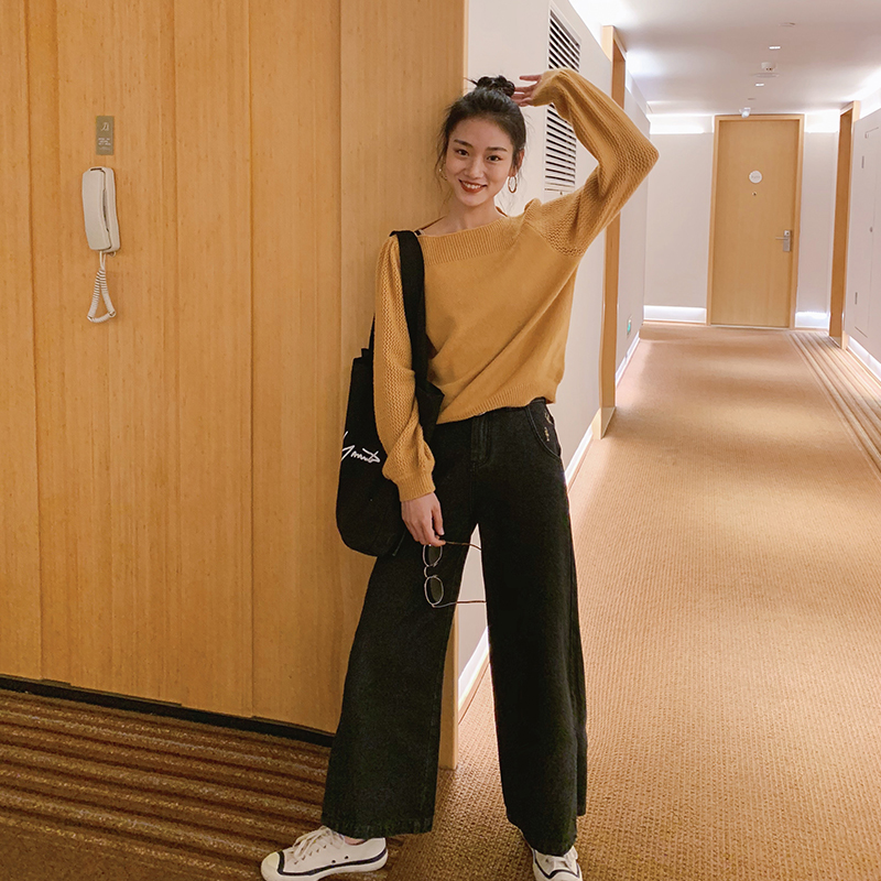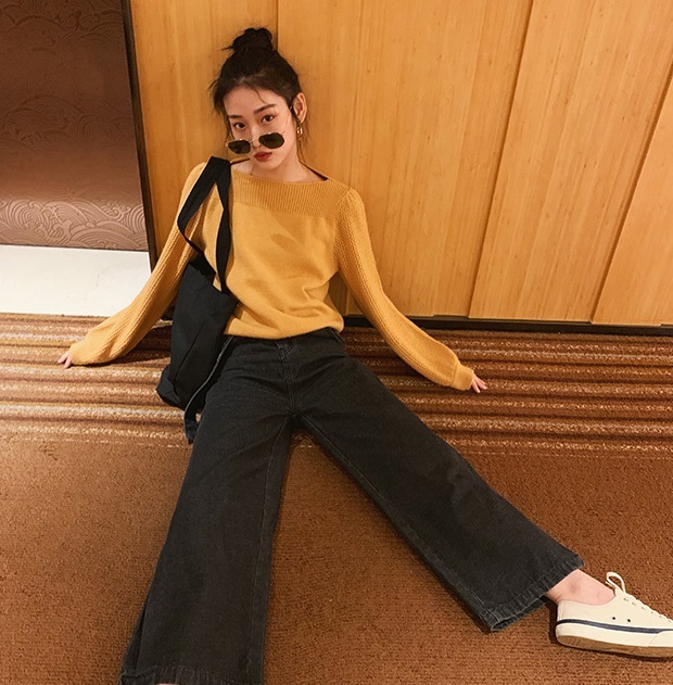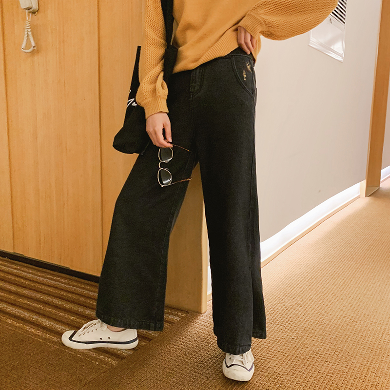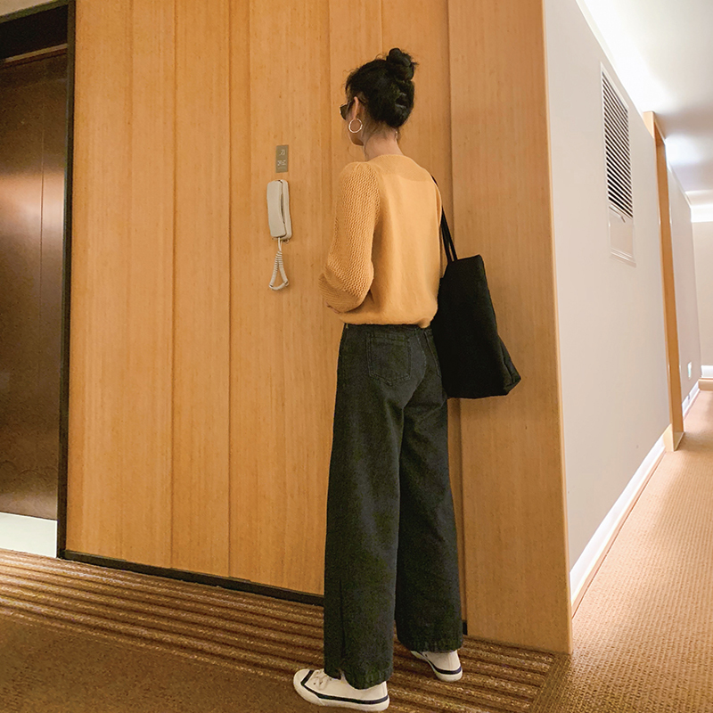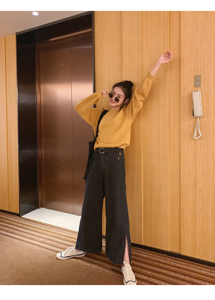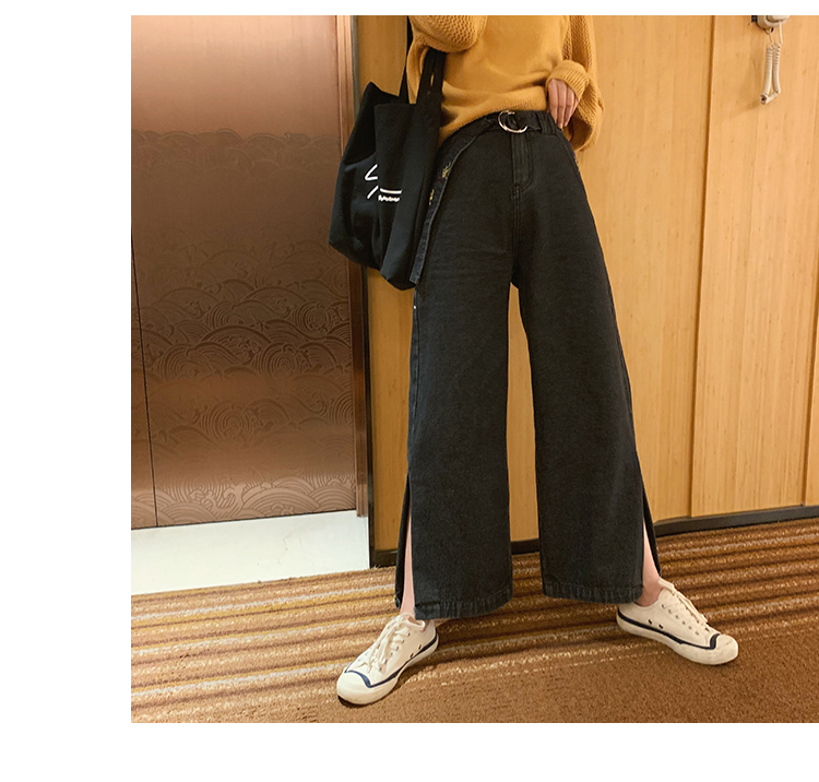 サイドにスリットの入った大人カジュアルなワイドデニムパンツ。