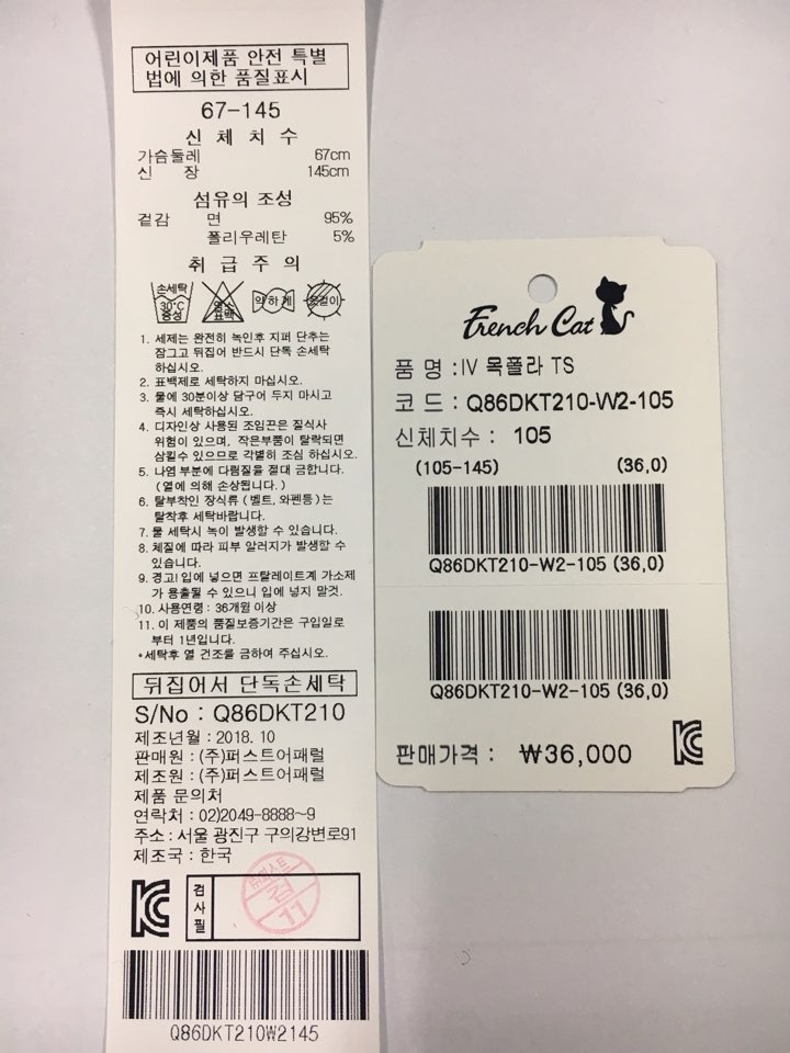 제조자 : 퍼스트어패럴
