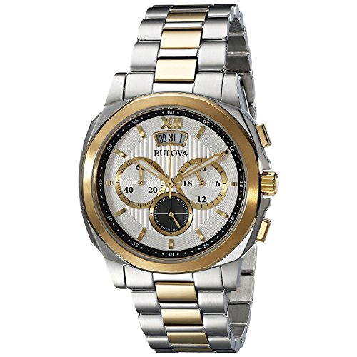 From Bulova's Classic collection comes this smart and stylish timepiece with a three-subdial chronograph feature, making it a perfect balance between form and function. The two-tone stainless steel bracelet and cushion case give it a modern twist, taking this traditional look a step into the future.Feature