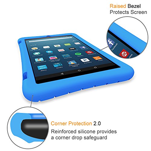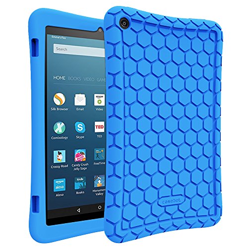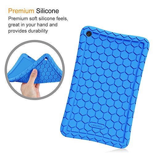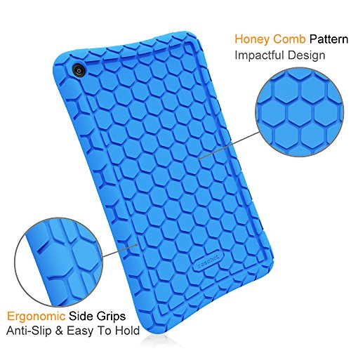 Fintie Silicone Case for Amazon Fire HD 8 (Previous Generation - 6th) 2016 release - [Honey Comb Series] [Kids Friendly] Light Weight [Anti Slip] Shock Proof Silicone Protective Cover, Blue