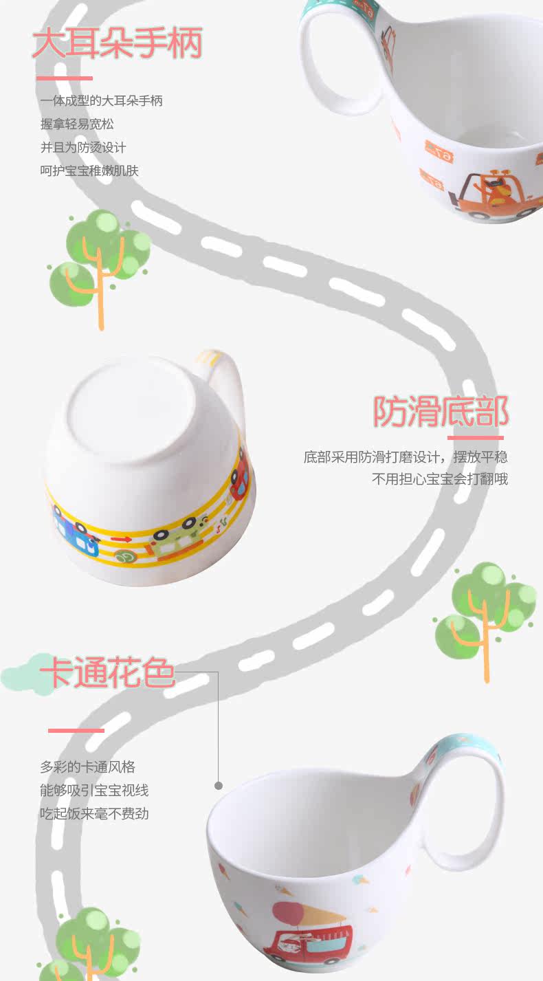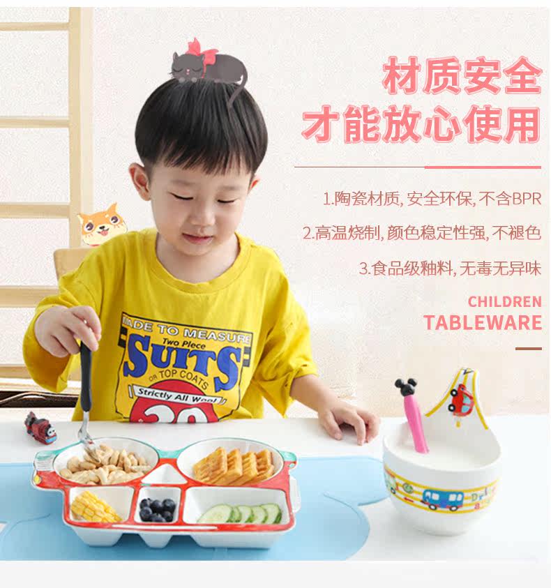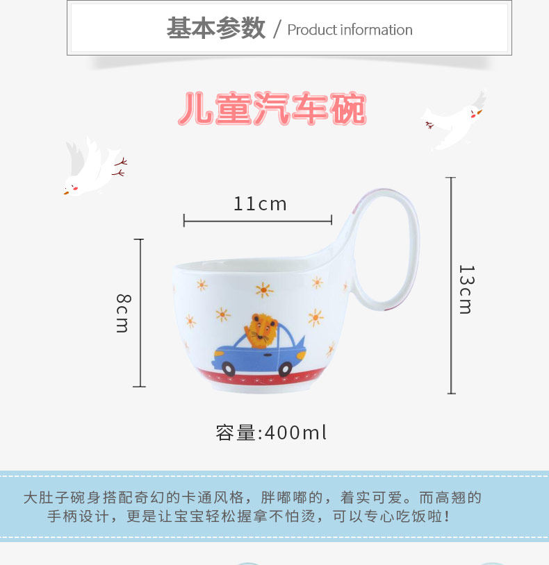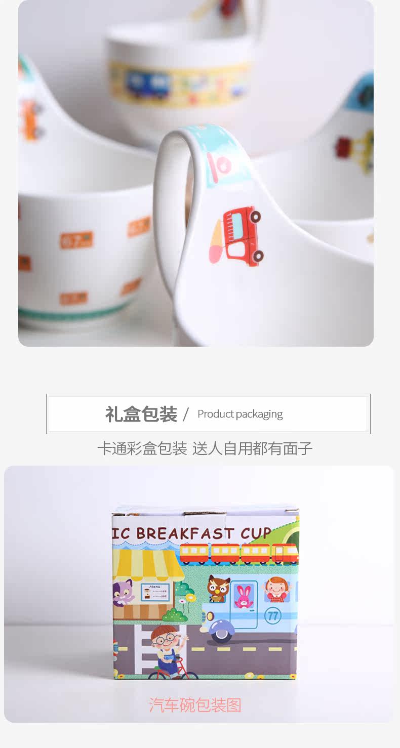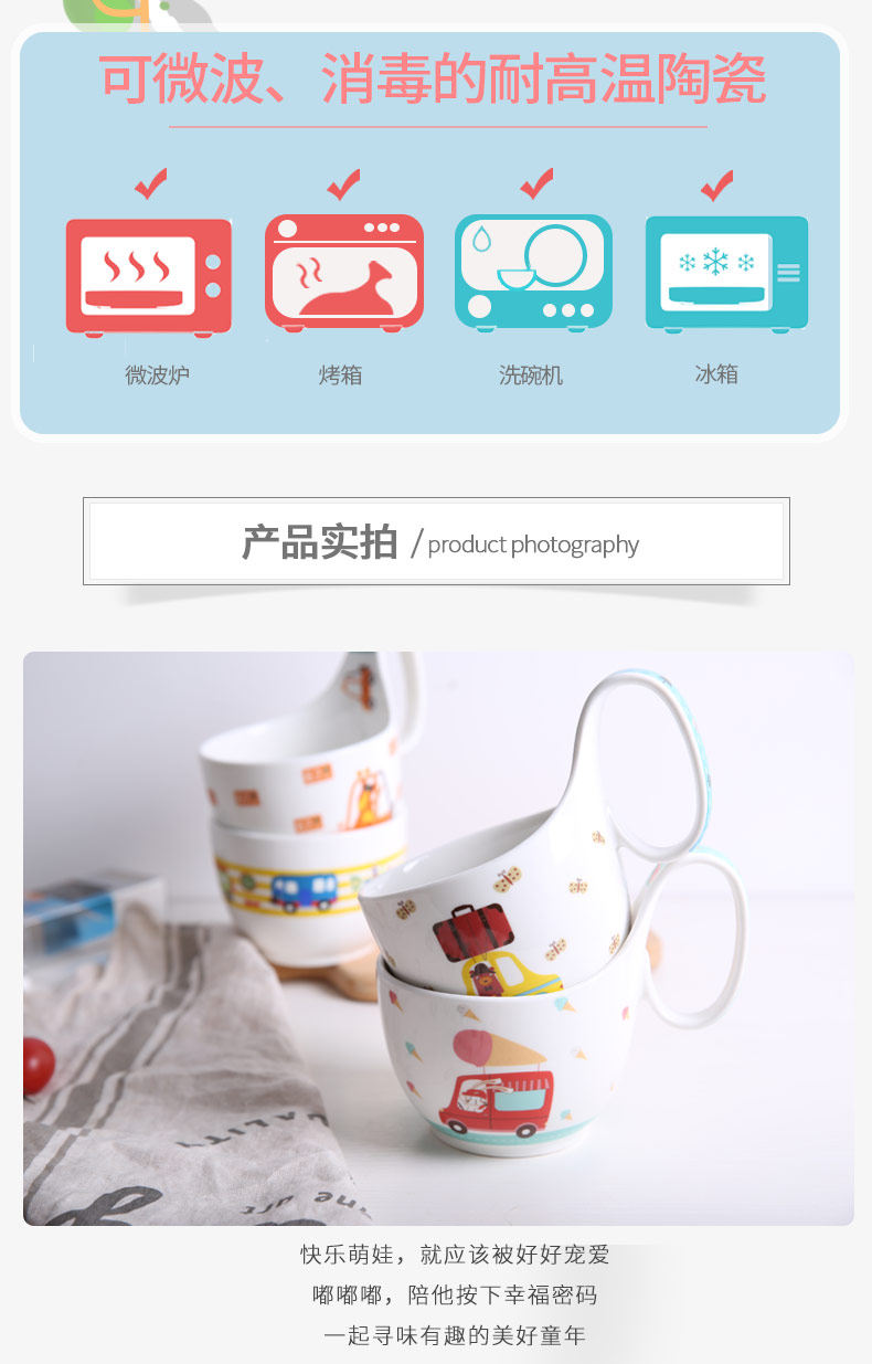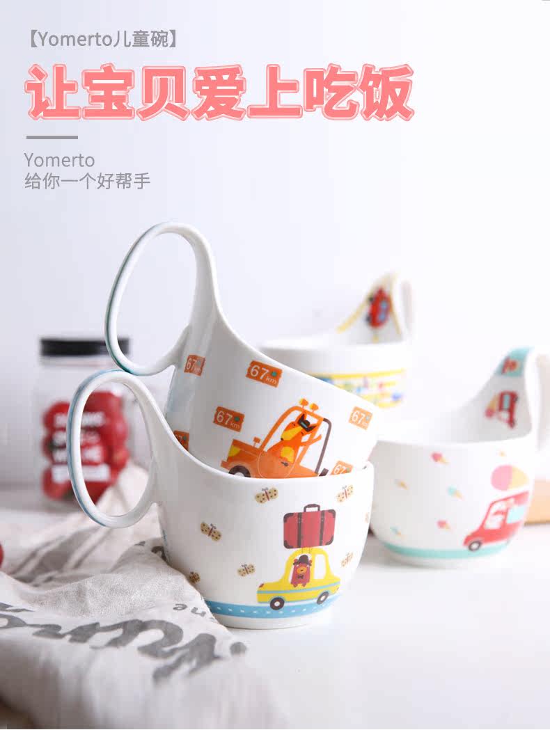 儿童餐具套装可爱卡通陶瓷宝宝饭碗家用创意个性小碗把手