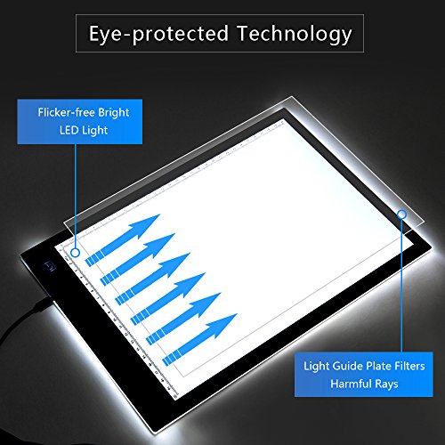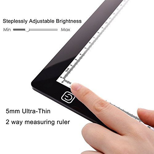 - STEPLESS DIMMABLE MODE & TOUCH SENSOR DESIGN: The light of this led tracing light box is STEPLESS adjustable,so you can set it to to your preference. Touch sensor Switch Design for easily turn on/off and brightness control by slight touch