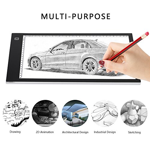 - APPLICATIONS: This drawing light box is ideal for Stenciling, 2D Animation, Calligraphy, Embossing, Scrapbooking, Tattoo Transferring, Sketching & Drawing, Sewing projects, Stained Glass, Quilting etc. 24 Hour customer serivce and 60 days Return Policy Guarantee .