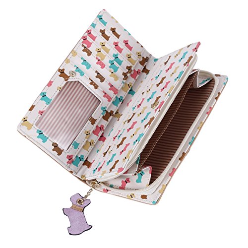 -. Binding : Apparel -. Brand : Damara -. Department : womens -. Feature : This Women¡¯s Wallet features with faux leather with button closure for your important items safe inside / 1 photo window,11 slip card slots for your credit cards and bank cards / 3 full length slit pockets for cash, important papers, event tickets, and receipts / Purse Approximate Dimensions: 7.3"L X 3.7"W X 1"H (18.5cm X 9.5cm X 3cm) / A zipper pocket offers additional storage for a spare or small accessories -. ProductGroup : Apparel -. ProductTypeName : ACCESSORY -. Size : Large -. Title : Damara Girls Lovely Dog Printing Wallet Soft Faux Leather Card Holder Bag