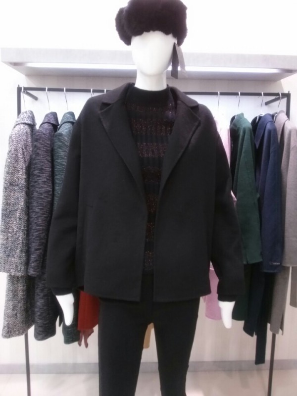 편안한 오버핏의 숏쟈켓인데요..앞뒤언발란스기장으로 뒤태는 힙을 가려주는 길이감으로 디자인했어요