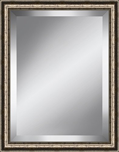 Watermark Collection Traditional Silver and Black Speckled Beveled Plate Mirror Framed Glass