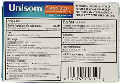 -. Title : Unisom SleepTabs, Nighttime Sleep-Aid Tablets, 80 ea Pack of 2