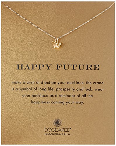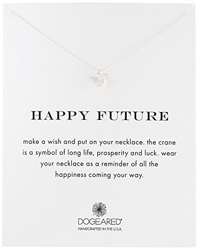 -. Binding : Jewelry -. Brand : Dogeared -. Department : womens -. Feature : Gift-ready necklace in "Happy Future" card featuring petite paper crane charm at center / 18" cable chain with sP.R.Ing-ring clasp / Card message reads: "make a wish and put on your necklace. the crane is a symbol of long life, prosperity and luck. wear your necklace as a reminder of all the happiness coming your way." / Made in United States -. Label : Dogeared -. Manufacturer : Dogeared -. Model : MRSS200427720-Parent -. MPN : MRSS200427720-Parent -. PartNumber : MRSS200427720-Parent -. ProductGroup : Jewelry -. ProductTypeName : FASHIONNECKLACEBRACELETANKLET -. Publisher : Dogeared -. Studio : Dogeared -. Title : Dogeared Happy Future Pendant Necklace