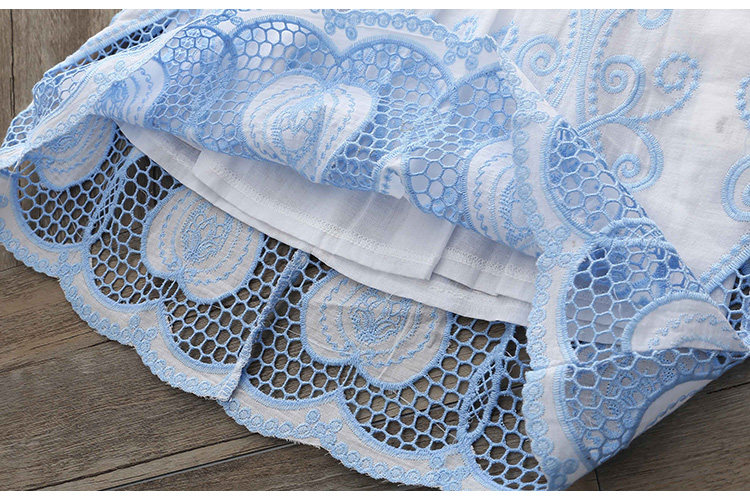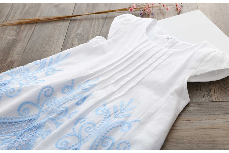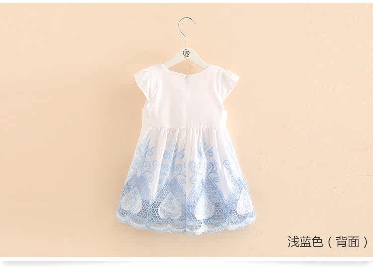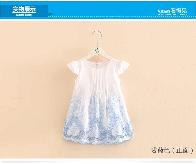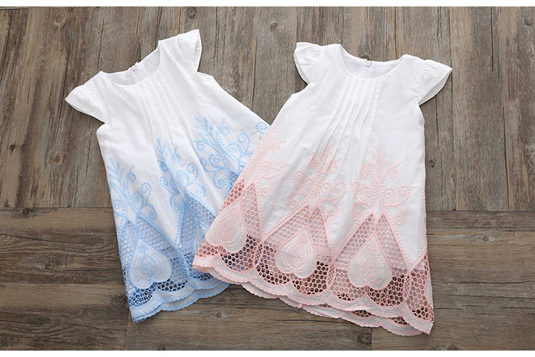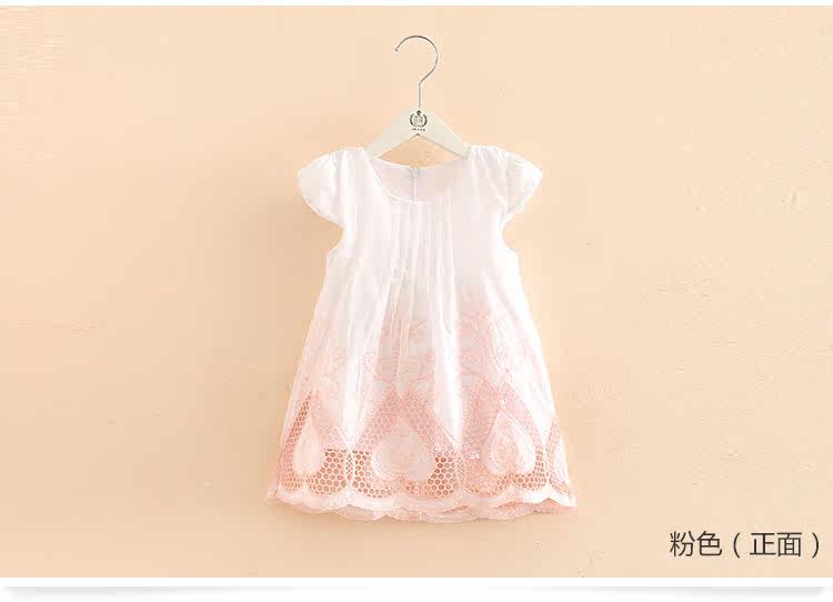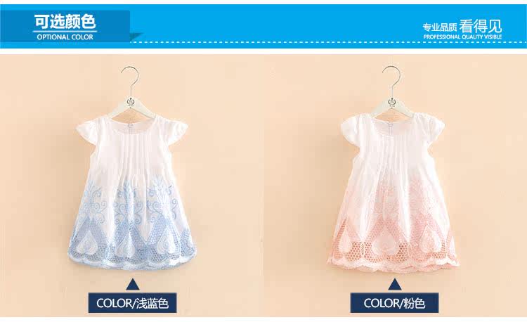 宝宝短袖连衣裙夏装新款女童童装 儿童刺绣镂空裙子
