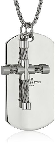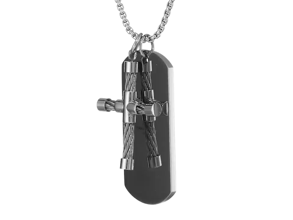Men's Stainless Steel 2-Piece Cable Cross with Dog Tag Pendant Necklace