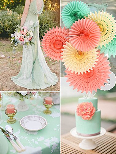 Made with hight quality tissue paper fans of popular mint green peach cream color. Can be used again and again.