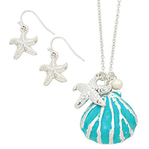 -. Binding : Jewelry -. Brand : Rosemarie Collections -. Department : womens -. Feature : Fashion trending long necklace with a starfish, clam shell and faux pearl charms / Necklace length 30" with 3" extension, Pendant 1.25" X 1.25" / Matching fish hook starfish dangle earrings, 1" length / Sea life themed pendant necklace and earrings set / Each item is delivered in a gift box with a non tarnish jewelers fiber pad. To extend the life of your jewelry avoid contact with water and chemicals such as soap and household cleaners, and store in a jewelry box or bag -. Label : Rosemarie Collections -. Manufacturer : Rosemarie Collections -. Model : SW-8697-0XXX -. MPN : SW-8697-0XXX -. PartNumber : SW-8697-0XXX -. ProductGroup : Jewelry -. ProductTypeName : FASHIONNECKLACEBRACELETANKLET -. Publisher : Rosemarie Collections -. Studio : Rosemarie Collections -. Title : Rosemarie Collections Women's Starfish and Sea Shell "Beach Babe" Fashion Jewelry Set