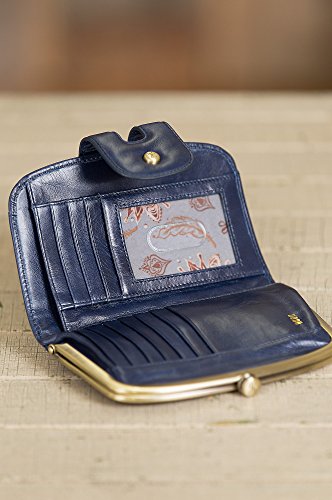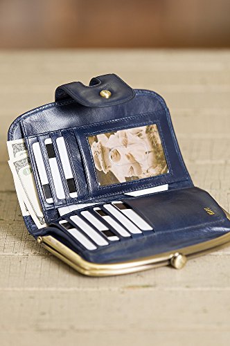 Studio : Hobo Publisher : Hobo Binding : Apparel Product Description Superbly mixing class and function, this beautiful Halo Compact Wallet by Hobo is the perfect accessory for all occasions! This clutch is made from smooth, top-grain leather which has been extra tumbled for a unique, broken-in vintage look and shine. Kiss-lock closure on one side opens up to reveal a spacious storage compartment. Undo the snap closure on the other side, and you'll find 9 card slots and a thumb-glide ID holder, perfect for keeping your most important cards within easy reach. A convenient back wall slip pocket is perfect for your phone. Measures 6.75" x 4" x 1". 0