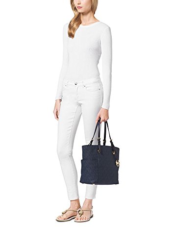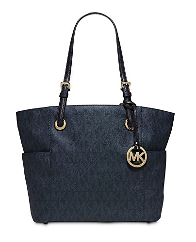 MICHAEL KORS Jet Set Logo East West Signature Leather Tote (Baltic Blue)