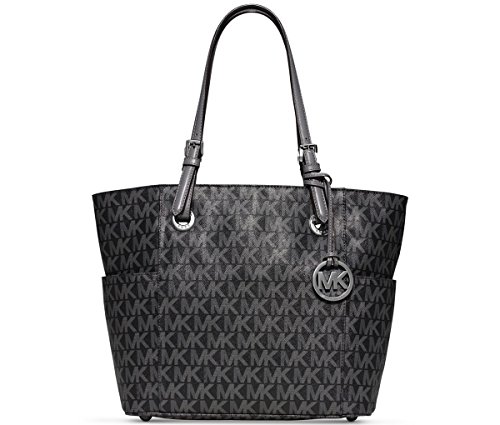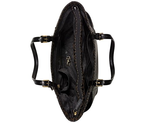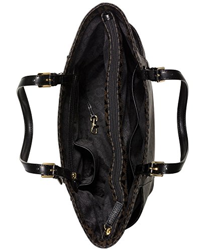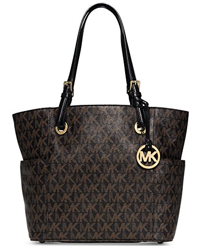 MICHAEL KORS Jet Set Logo East West Signature Leather Tote (Black/Dark Brown)