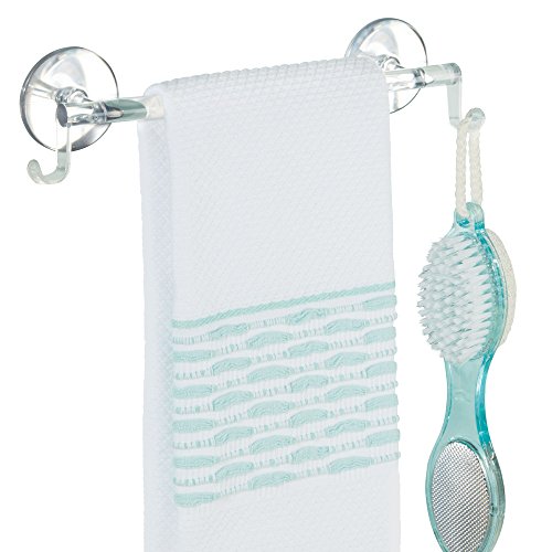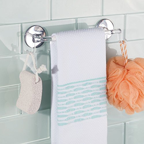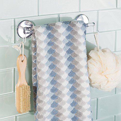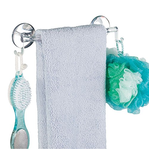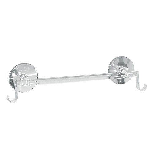 InterDesign AFFIXX, Peel-and-Stick Strong Self-Adhesive Washcloth Bar Holder with Hooks for Bathroom, Shower - Clear/Chrome
