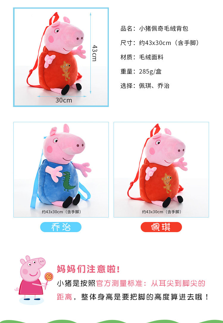 可爱小猪佩奇毛绒背包宝宝小孩双肩包卡通幼儿园男女儿童书包