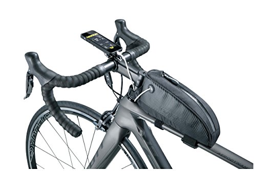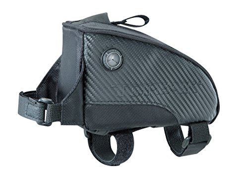 Large capacity top tube mounted bag giving cyclist quick and easy access to energy bars, phone, wallet, tools or any small essential gear they need close at hand. Features battery cable access for charging a mobile device.