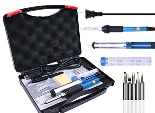 Soldering Iron kit 60W 110V-Adjustable Soldering Iron, Soldering Tip Cleaner Sponge,5 Soldering Iron Tip, Anti-Static Tweezer, Desoldering Pump, soldering stand, Welding and Soldering Carrying Case
