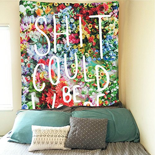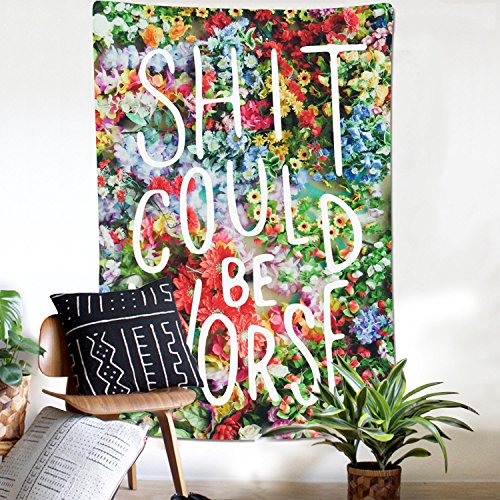"Although the world is full of suffering, it is full also of the overcoming of it". This Floral Tapestry will bring you enthusiasm, "Shit Could Be Worse",Cheer up. ★ADVANTAGE:? ?ADORNMENT EFFECT: The tapestries will help transform your room into your private paradise! Made from high quality 100% polyester tight woven. High quality silky satin fabric.Perfect for any room including living rooms, bedrooms and dorm rooms. Matches well with various color palettes of rugs, furniture and any other home decor accessory. ?ENVIRONMENTALLY FRIENDLY: No dye substance harming health of your family. With vibrant colors and clear images they add a great perspective and completely change the look of a room. High resolution pictures bring 3D like realistic experience to your life. It is not too thin or too thick. Quick and luxurious way to refresh and change the appearance of your home without a big expense. ★PRODUCT DETAILS:? ? Material: lightweight polyester.? ? Size: 1#:51.2"X59.1"/130cm*150cm 2#:59.1"X82.7"/150cm*210cm.? ? Shape: Rectangular. ★WASHING:?Machine washable - Cold - Delicate cycle - Hang dry only. ★PACKAGED INCLUDED:?1 Piece?Floral Tapestry, 1#: 51.2"X59.1" /130cm*150cm ★NOTES:? ?color differences allowed for light effects.? ?Provide satisfactory response within 24 hours. If you any have problems About our items, please feel free to contact us. 0 |
