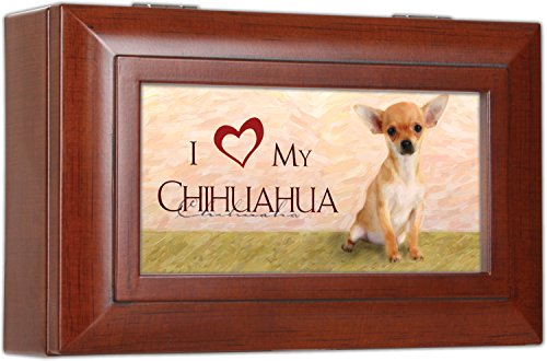 Love My Chihuahua Cottage Garden Rich Woodgrain Finish Petite Jewelry Music Box - Plays Song Wonderful World