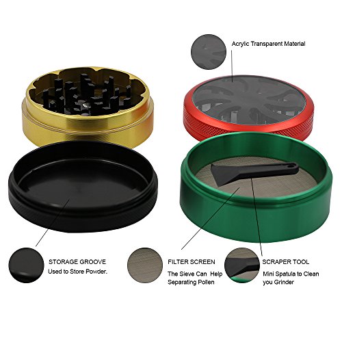 DouWin Multi-color Grinder with Clear Cap 4 Floors 2.5” Herb Mulling Machine Premium