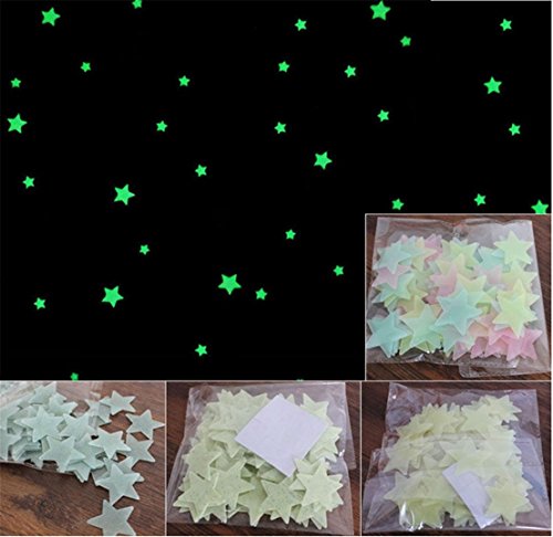 -. Feature : Size:3*3cm / Package information:100pcs x glowing stars / Removable and repositionable with no sticky residue,Applies to any smooth surface / The luminous stickers are an ideal gift for little kids, friends or family members. / Ideal for applying on doors,lamps,household articles,bedroom ceilings and any smooth, clean surface, Please absorb the light before using so that it will be bright at night