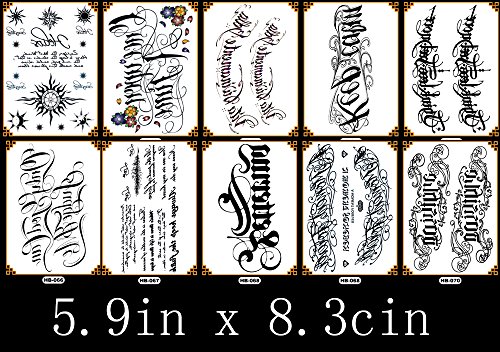 10 Sheets Colorful Half Arm Temporary Paper Sexy Body Tattoo Sticker Water Transfer Tattoo for Professional Make Up Dancer Costume Parties, Shows (HA-03)