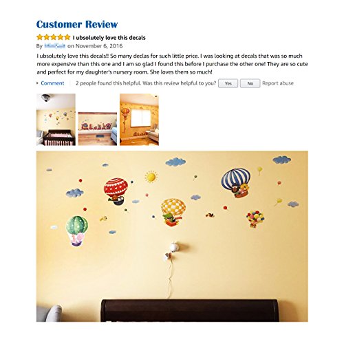 Decowall DA-1406 Animal Train and Hot Air Balloons Kids Wall Decals Wall Stickers Peel and Stick Removable Wall Stickers for Kids Nursery Bedroom Living Room
