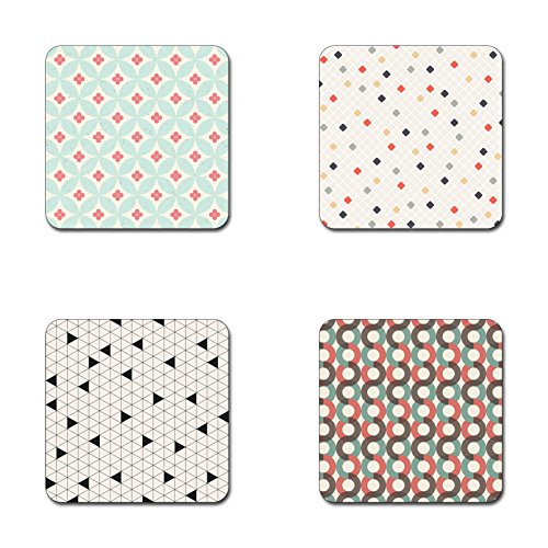 Repeating geometric with triangular linear grid pattern square coaster set - Made of recycled rubber - set of 4