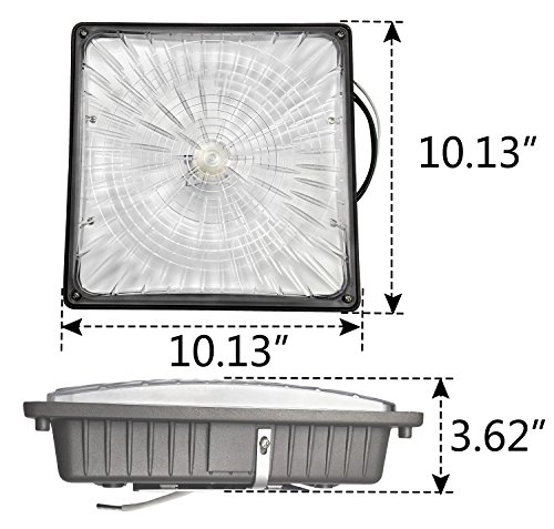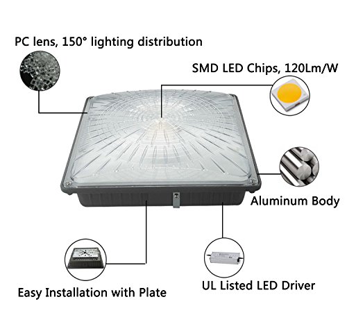 SUPER BRIGHT: High lumen output 5,100Lm by 110LM/WATT. Our canopy is ideal for bring brightness to the parking lot, gas station, home, shop building, corridor, overhead door lighting application.
