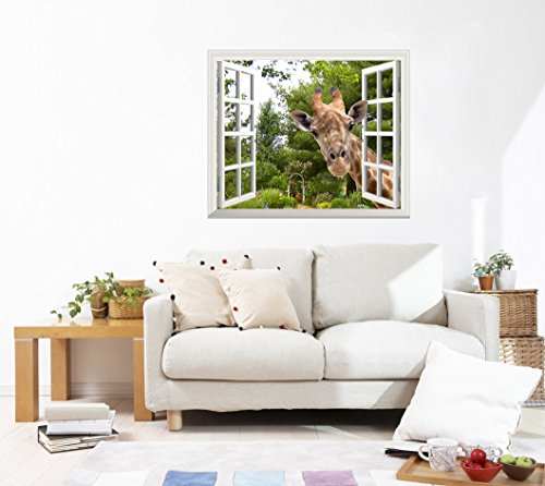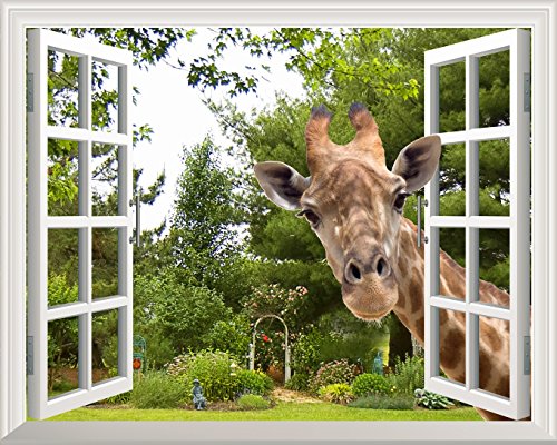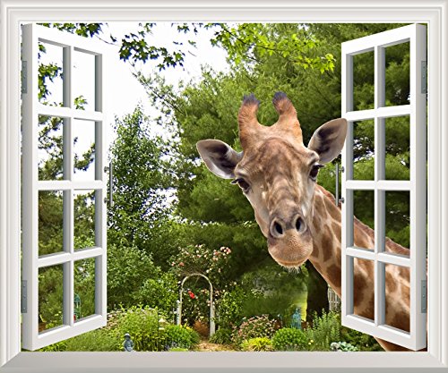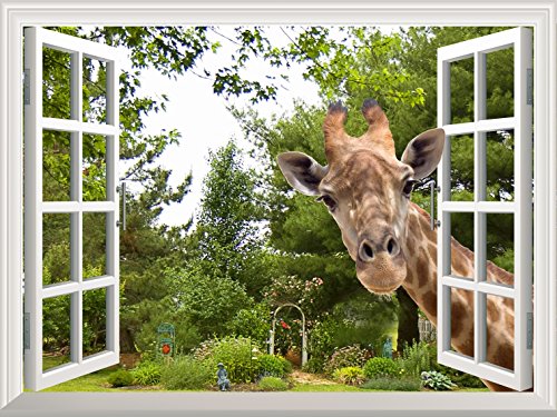 Creative Wall Sticker Removable Wall Art Wall Decal - A Curious Giraffe Sticking Its Head into an Open Window | Cute & Funny Wall Mural - 30"x36"