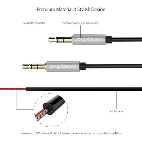 CACAGOO Aux Cable (6.6ft/2m) 3.5mm Auxiliary Audio Cable for iPod, iPhone, iPad, Home/Car Stereos Headphones Speakers Phones Tablets MP3 Players