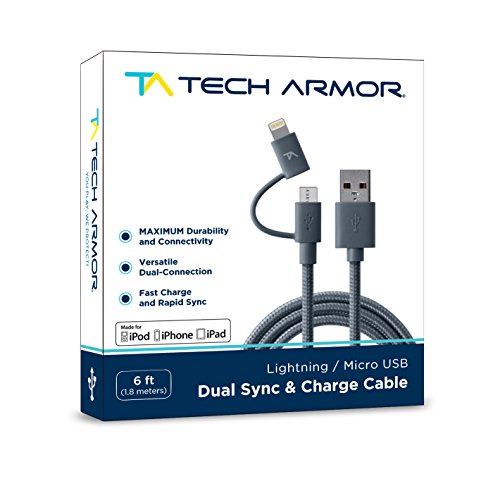 WHAT ARE TECH ARMOR DUAL CABLES? - Tech Armor Braided Lightning Cables are made with highest quality components, including nitrogen-injected, skin-foam dielectric jackets, for higher conductivity, longer life, and superior signal transfer.