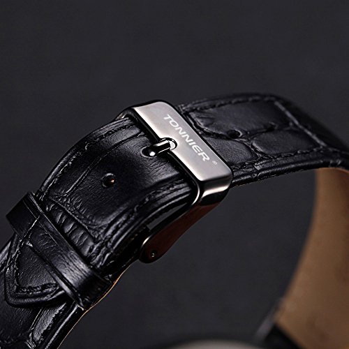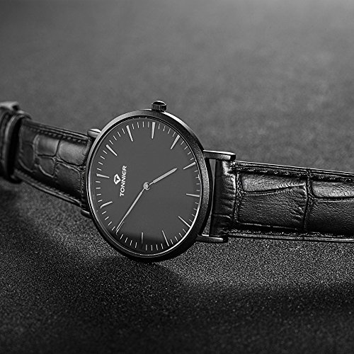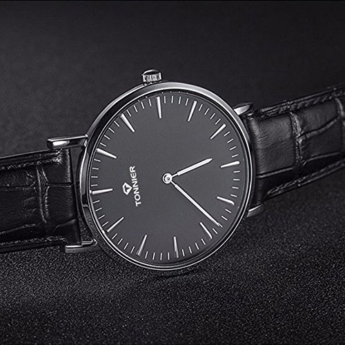 -. Title : Tonnier Black Genuine Leather Strap Watch Ultra Thin Quartz Watches without Second Hand for Men