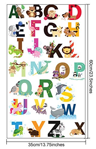-. Binding : Kitchen -. Brand : Child Kingdom -. Color : Multicolor -. EAN : 0615284073468 -. Feature : Cute and Clear letters / Brightly patterned letters in a classic font / Great for teaching alphabets to kids & also decorating their room / Easy to apply to the any smooth surface such as wall, door and so on / Repositionable; Removable -. IsAutographed : 0 -. Label : Child Kingdom -. Manufacturer : Child Kingdom -. ProductGroup : Home -. ProductTypeName : HOME -. Publisher : Child Kingdom -. Studio : Child Kingdom -. Title : Nursery Educational Wall Decals - Animal Alphabet Baby Decorative Peel and Stick Wall Art Sticker for Daycare School Kids Room Decoration Decals -. UPC : 615284073468