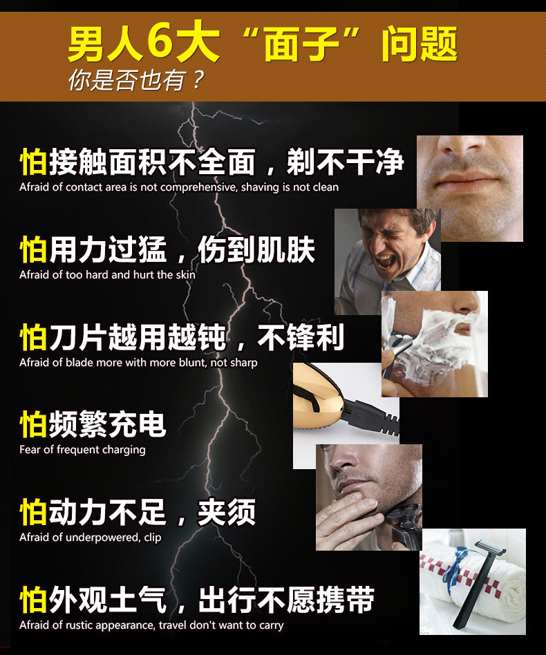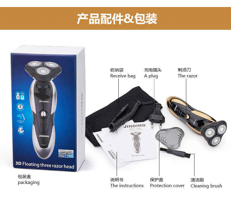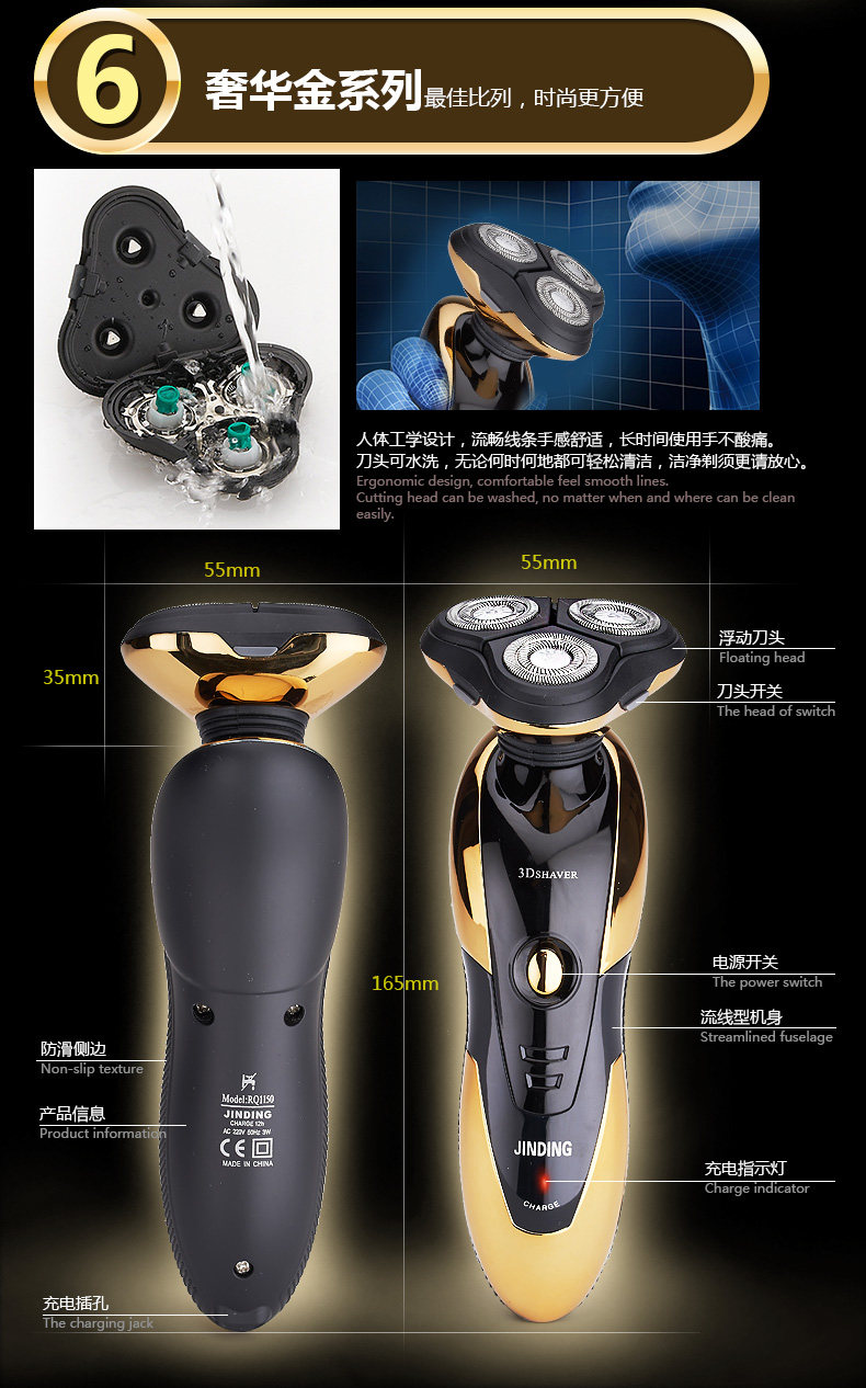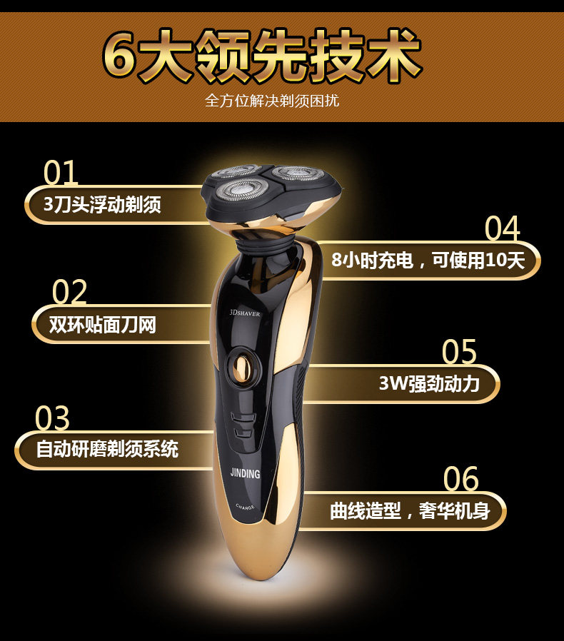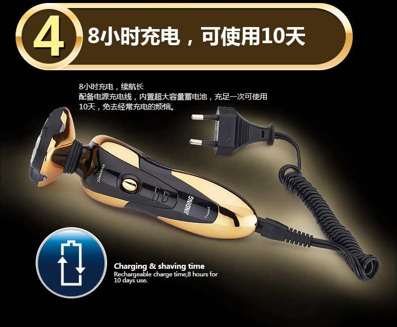With rechargeable battery enclosed in,this rechargeable electric shaver is absolutely convenient for you to shave at anytime