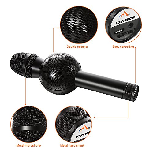 Keynice Bluetooth Portable Wireless Speaker Karaoke Handheld Microphone Cellphone Karaoke Player for Home KTV Singing compatible with Android Smartphone Apple iPhone Cellphones - Black