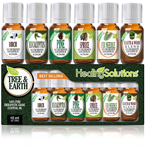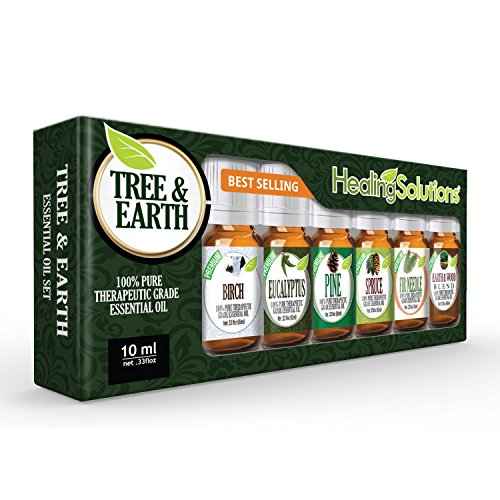 - The Top 6 Tree & Earth Essential Oil Gift Set contains the following therapeutic essential oils: Birch, Eucalyptus, Pine, Spruce, Fir Needle, Earth & Wood Blend.