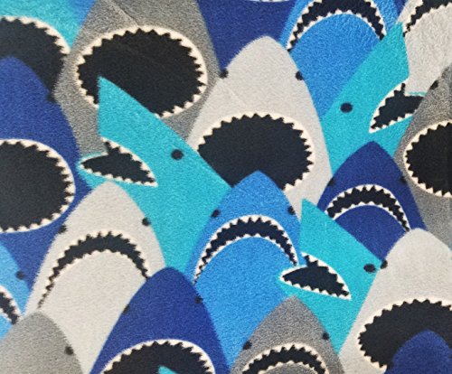 Blue and Grey Sharks All Over Fleece Fabric by David Textiles - 2 yards