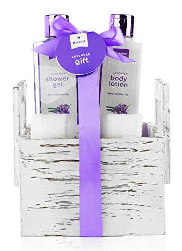 4pc Lavender Bath Kit Spa Set in Wooden Gift Box Lavender is a popular aromatherapy scent because it relieves stress & revitalizes the senses!
