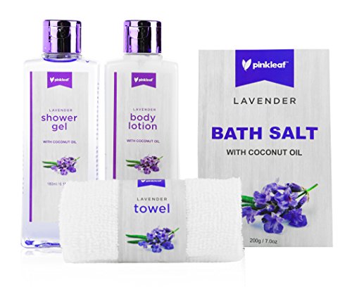Besides a lavender body wash, lavender bath salts & a lavender body lotion, the spa gift