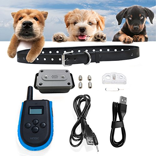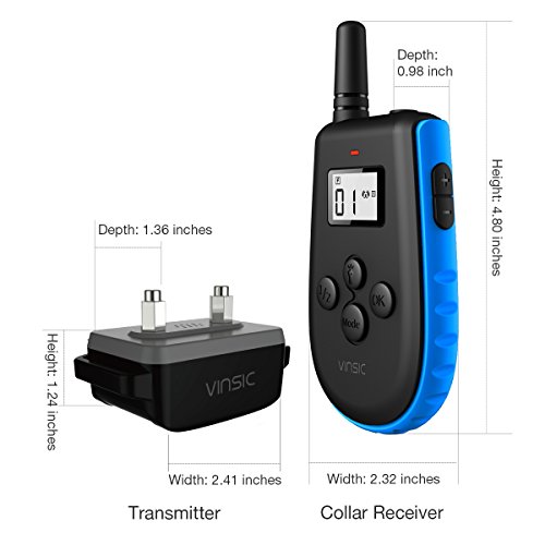 Shock Collar for Dogs Rechargeable and Waterproof dog training collar The dog shock collar with remote consists of a receiver, a transmitter and a collar. The device is rechargeable and waterproof, then the battery has a long-lasting life. It's safe and adjustable, so you could cut out the collar in accordance with the size of you dog. On a sunny day, take your beloved dog to play on the green lawn drawing near the pretty lake, you just enjoy the owesome sunshine and sit on a couch taking the product in hands and feel the pleasant time.