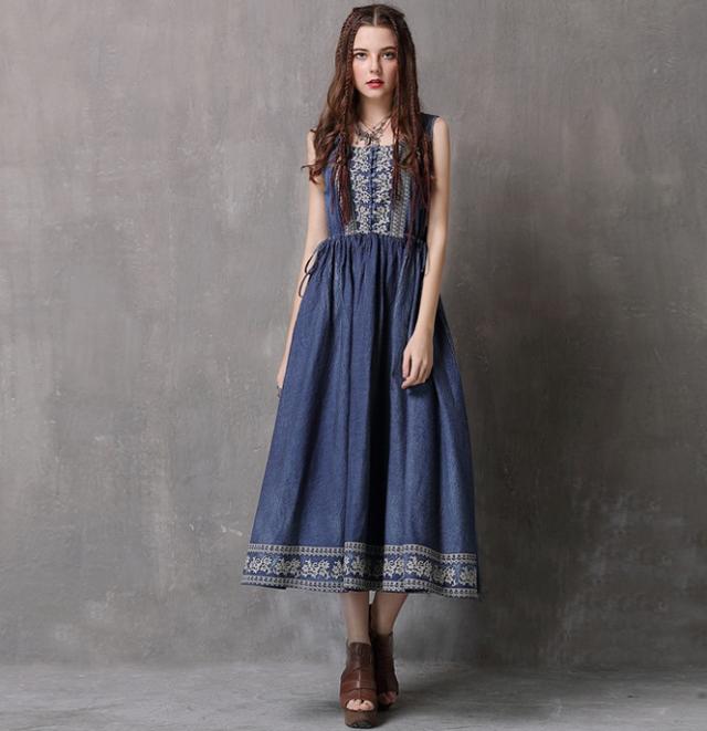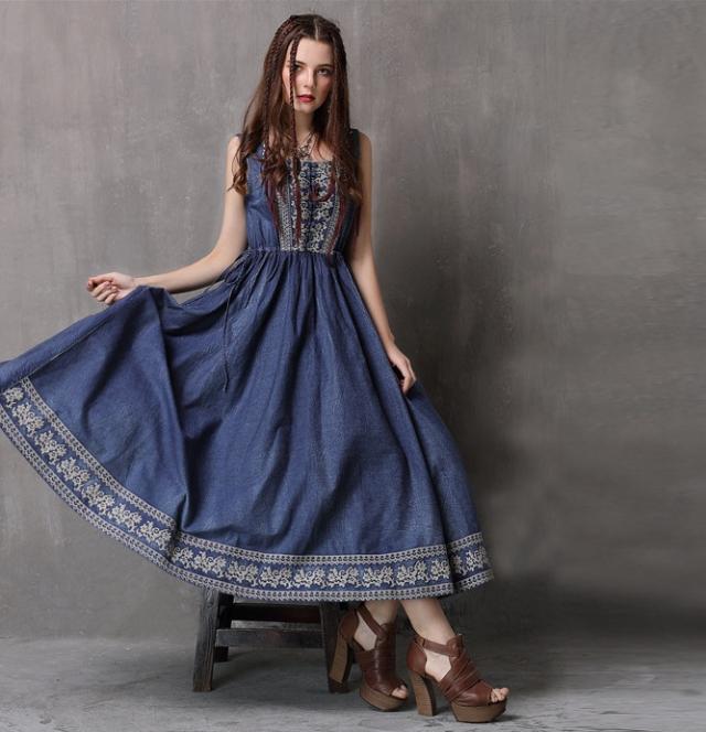 秋物デニムワンピース 2018トレンド レディース 刺繍入り ラウンドネック ブラウス ピンク 長袖 ボヘミアン デニム柄 ベルト付き Oネック Aライン マキシ ワンピース ブルー ノースリーブ フリンジ ボヘミアン ボヘミアン調 エスニック レトロ 刺繍ワンピ ボヘミアン柄 ガウン風ワンピ デニムワンピ 民族衣装 ヒッピースタイル ゴシックアイテム ほんのりダークファッション センシュアル ゴシック風コーデ センシュアル レトロファッション レトロコーデ ワンピース大好き クラシカルなフォルム コンシャス ラグジュアリー オールブラックでドレッシー ブラックのオールインワン ゴシック モノトーンコーデ 毒っ気 パープル 民族風 ヒッピー 映画女優 体型カバー 送料無料 おしゃれ 2018新作