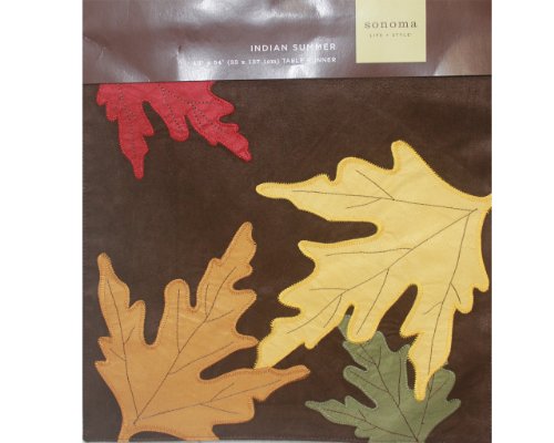 - Feature : Sonoma Festive Fall Leaves Table Runner / This rich chocolate brown table runner is a perfect dining room accent for the fall season / Warn inviting fall colors / Velvety soft on one side and closely woven canvas on the other. / Size: 13" W X 54" L