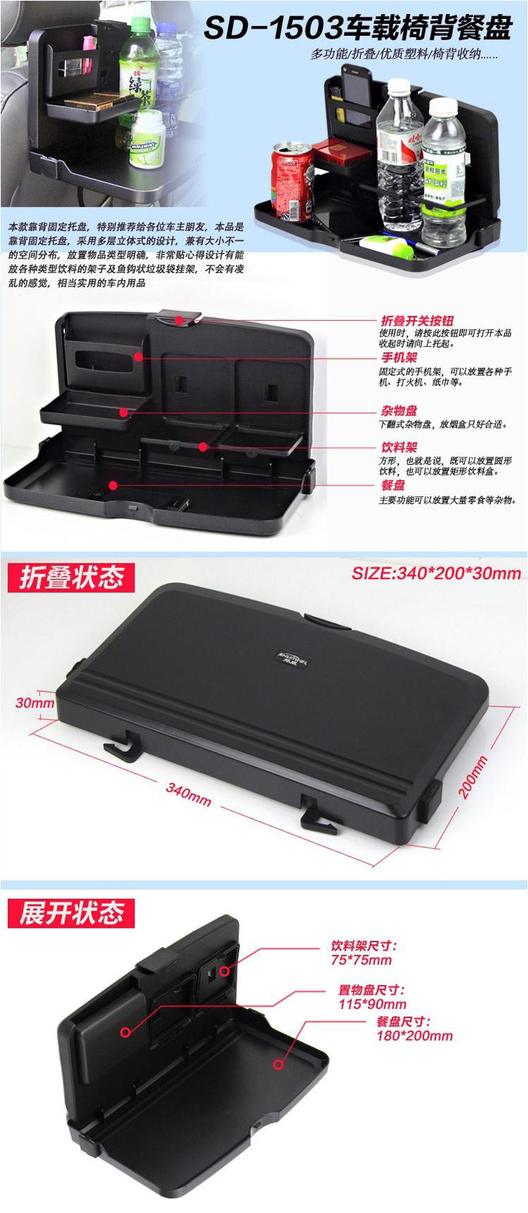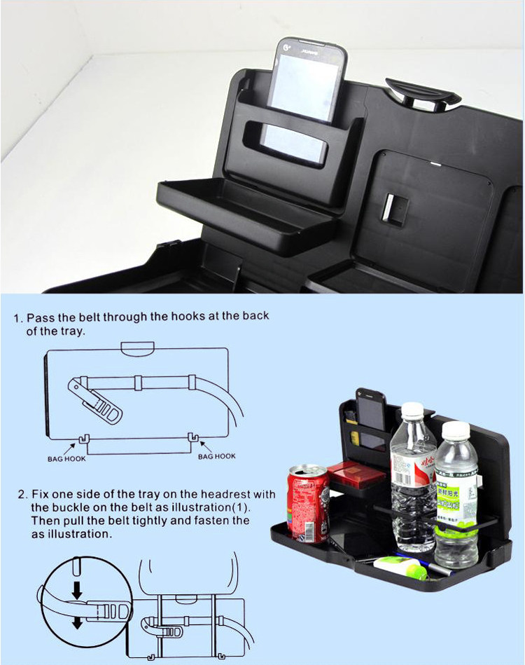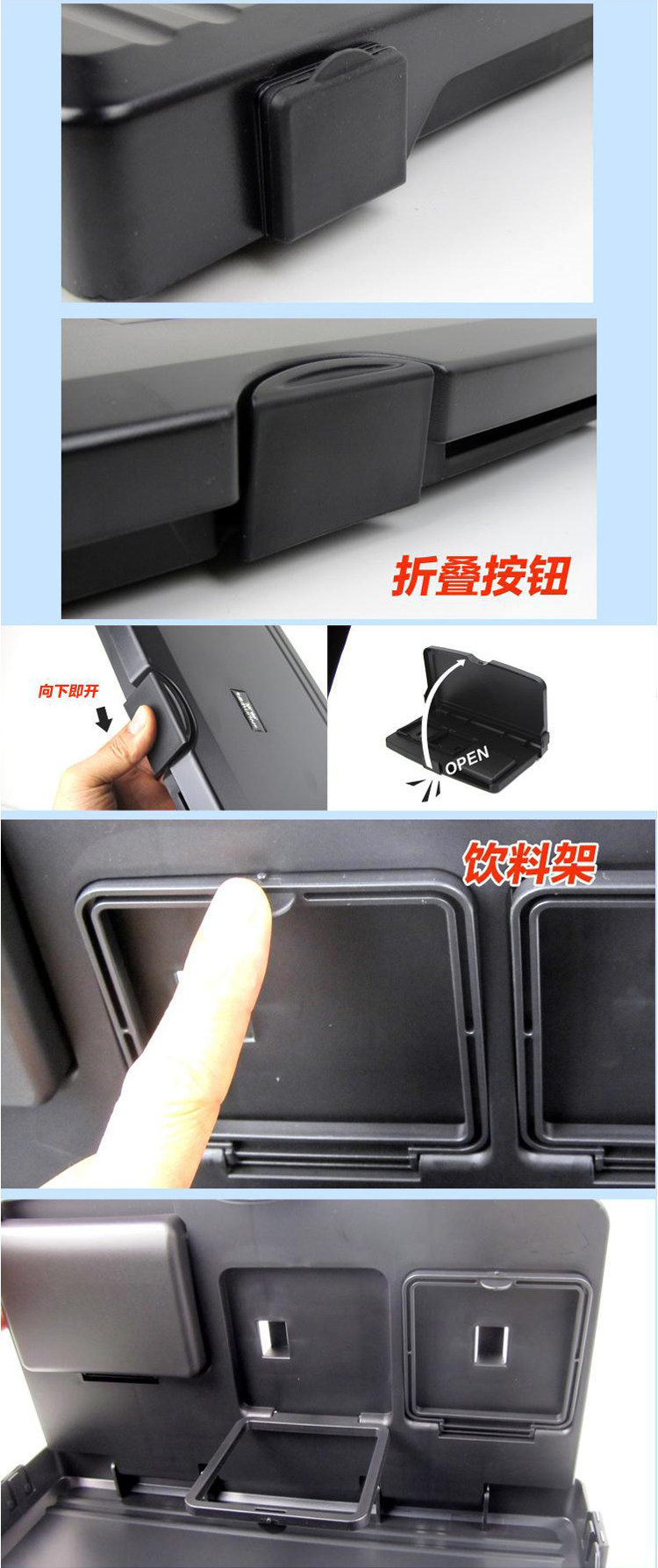 折叠车用椅背餐盘车载餐桌餐盘 汽车杯架饮料架置物架 大号