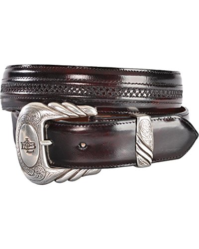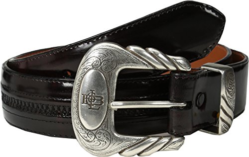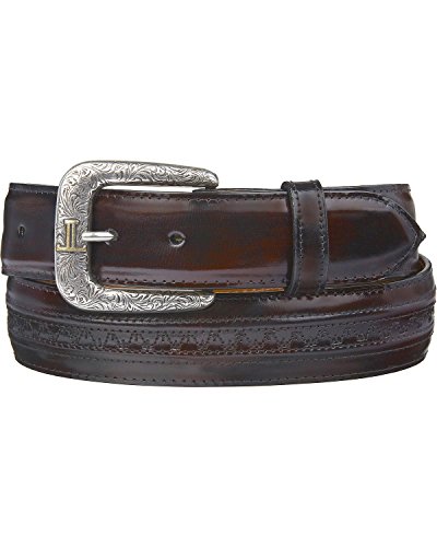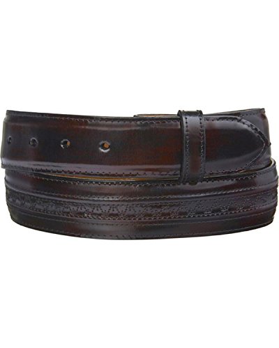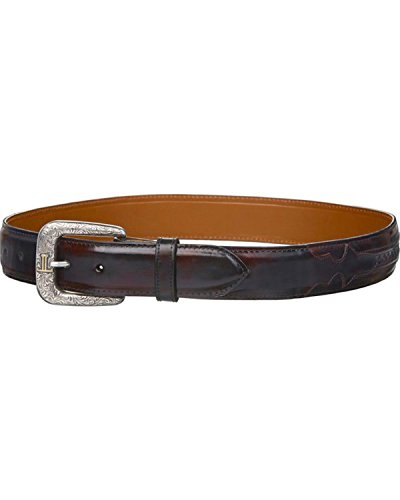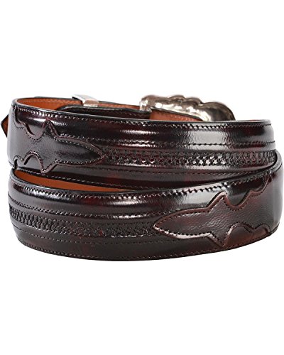 Product DescriptionThis rich black cherry goatskin leather belt from Lucchese is handcrafted with a removable engraved silver-tone buckle and keeper.0