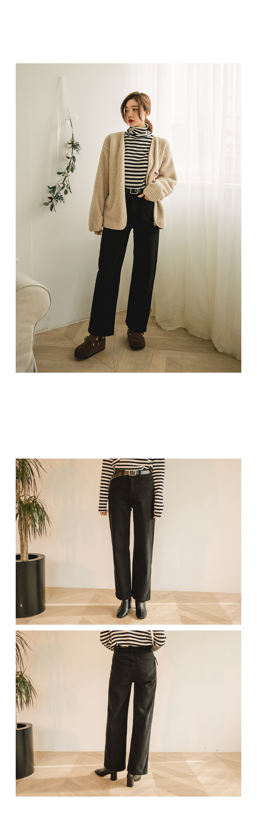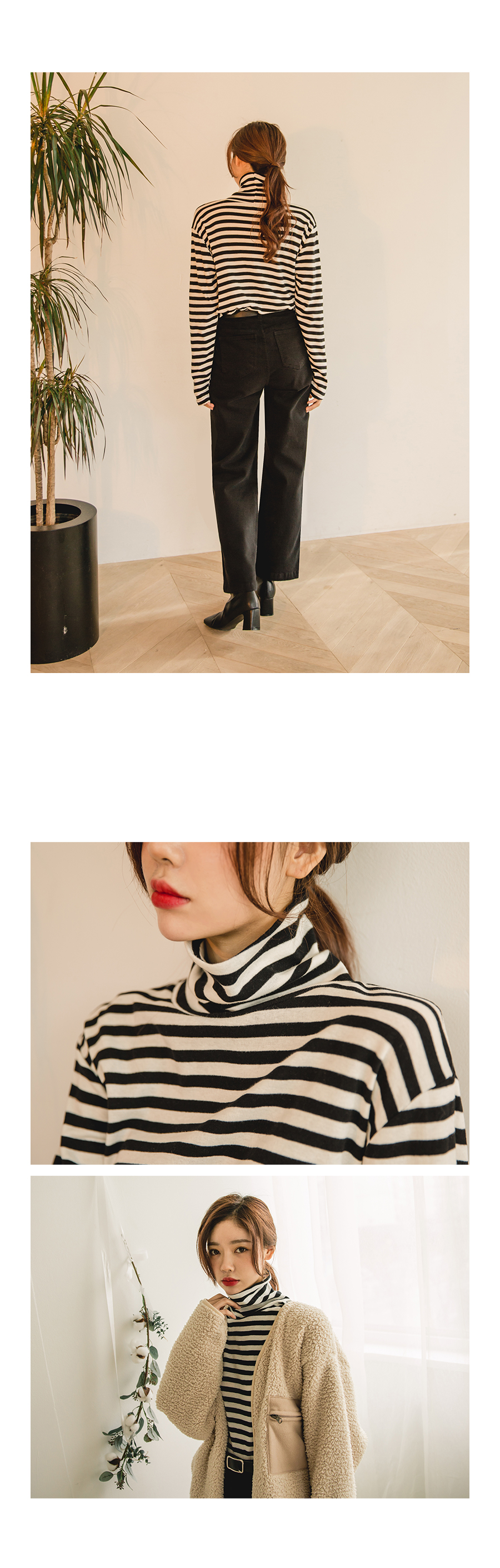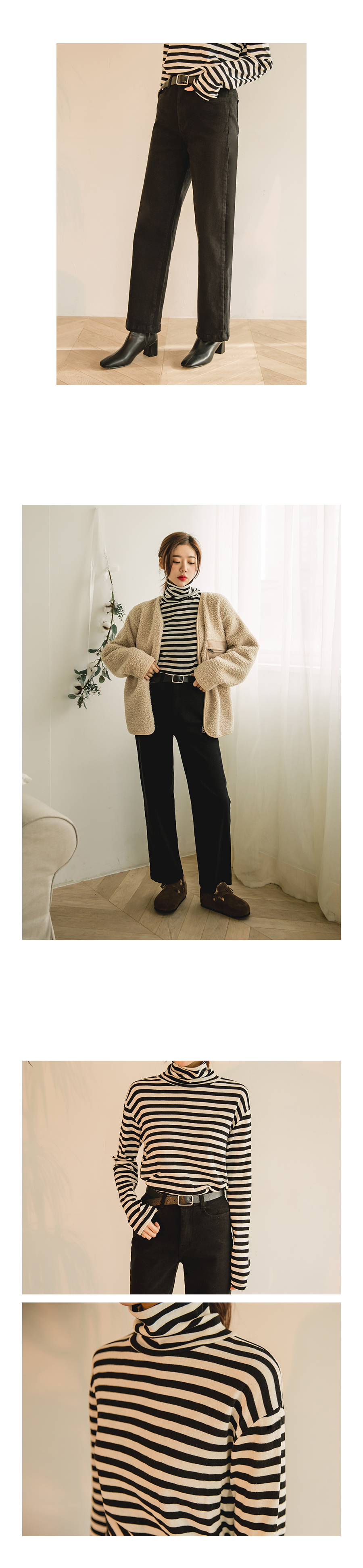 목을 감싸주는 폴라넥으로 따뜻하게 착용하였습니다